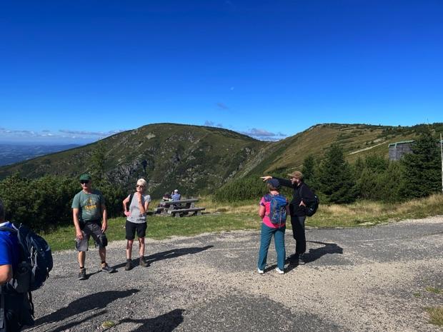 We rijden met de bus naar Pec pod Sněžkou . Deze plaats ligt op 770 meter en we gaan de hoogste berg van Tsjechië beklimmen, de Sněžka 1603 meter hoog.