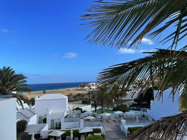 We zien als eerste het lelijke enige hoogbouw hotel op Lanzarote.