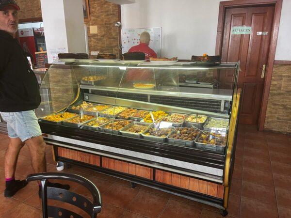 In het restaurant worden we welkom geheten door de eigenaresse. Vervolgens bestellen we een broodje Tuna en wat lekkers uit de tapas hoek. Alcohol is niet toegestaan tijdens deze fietstocht, maar een alcoholvrij biertje smaakt nu ook prima.