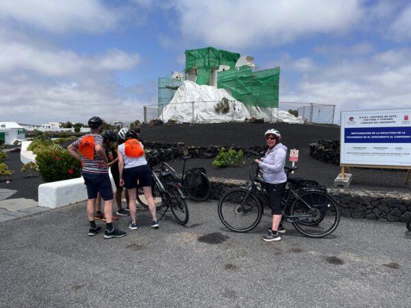 We fietsen nu verder met flinke tegenwind naar onze lunchplek, Chiringuita in Tequise, de voormalige hoofdstad van Lanzarote. Een prachtig wit plaatsje.