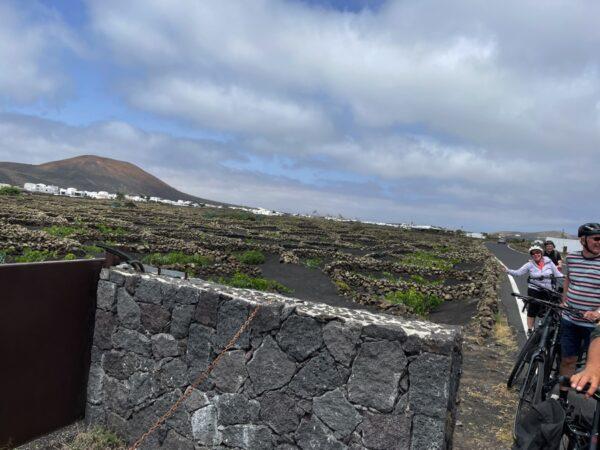 Onze tocht gaat nu verder door het wijnbouw gebied, La Geria. Enorm uitgestrekt met wijnranken in lavakuilen omringt door stenen.