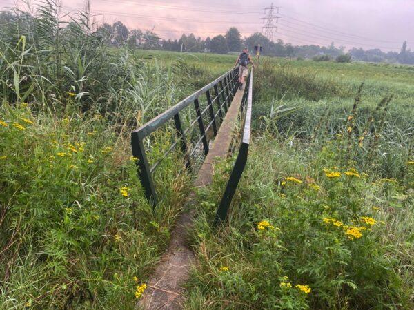 Na het vertrek uit Komaen lopen we in de richting van het viaduct over de snelweg.