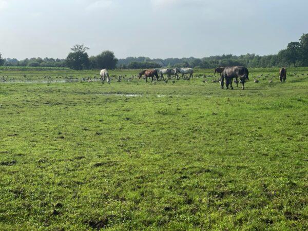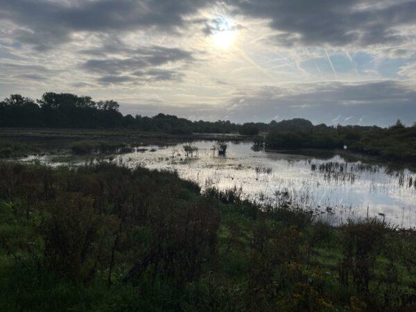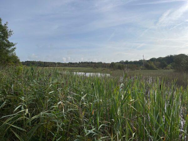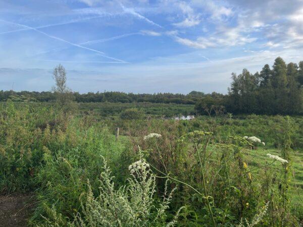 Het is hier genieten van het weidse zicht op het moerasgebied van de Beerze.