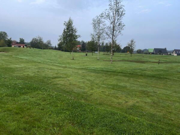 Na het verlaten van de startlocatie lopen we langs de rand van het golfterrein naar de openbare weg.