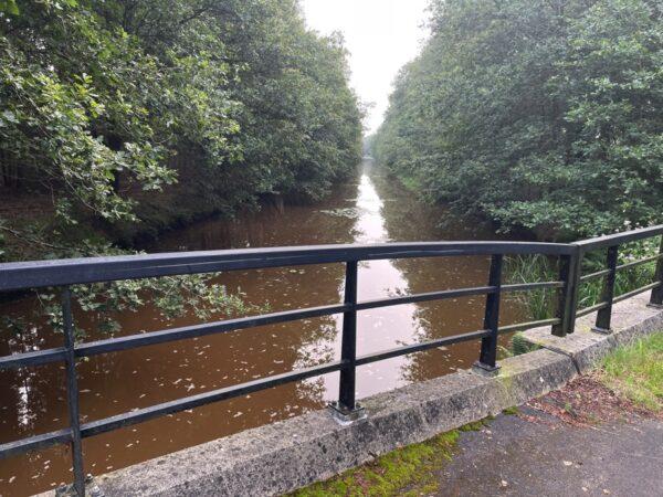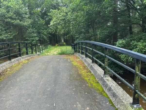 We steken via de brug het kanaal over en naderen het zuidelijke deel van landgoed Baest.
