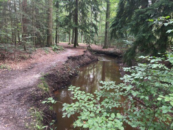We lopen een stukje parallel aan het kanaal en gaan dan de bossen weer in.