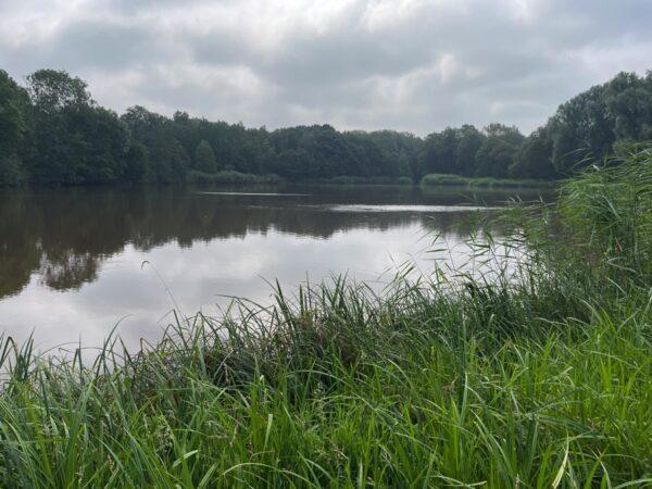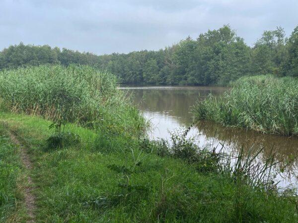 We lopen nu langs de Mortelen, eigendom van het Brabants Landschap en gelegen in het hart van het Groene Woud.
