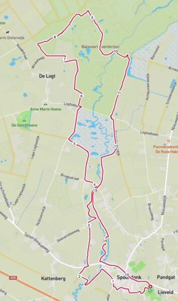 De 20 km route in zuidelijke richting