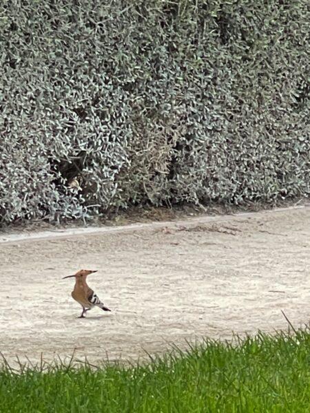We worden verrast door een hop, het vogeltje trekt veel aandacht.