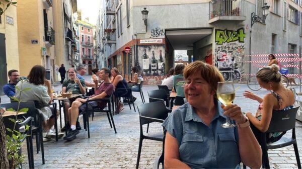 Dan lopen we maar door naar het oude centrum en belanden bij het pleintjes Les Arbol. Daar zit een tapas restaurantje waar buiten nog een tafeltje vrij is. We bestellen een fles verdejo en wat tapas hapjes.