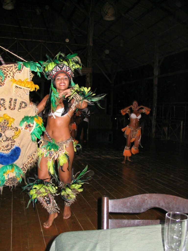 We krijgen een Boi Bumba show, maar niet zo goed als die we op het resort gezien hebben. Rond half twaalf zijn we terug, een latertje vanavond.