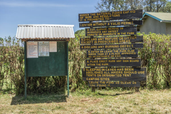 Taco heeft ons formeel uitgeschreven uit Kilimanjaro reservaat, alleen onze handtekening nog en we kunnen de bus in.