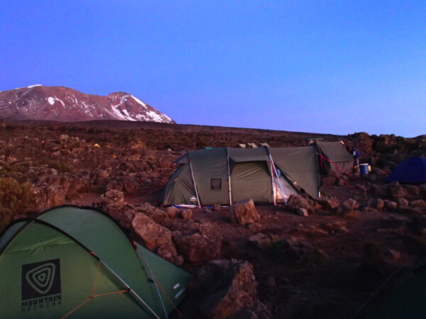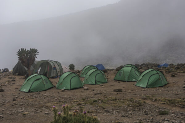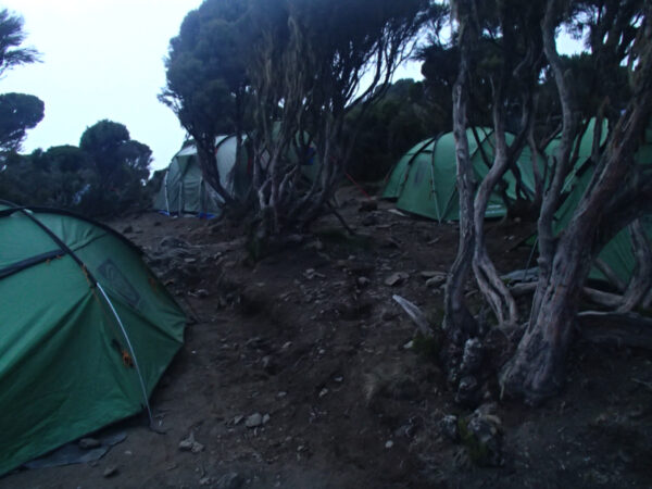 Na de lunch kunnen we nog even bijkomen, om 14:00 u lopen we naar Millenium Camp (Mweka Camp) op 3800 meter, ongeveer 2,5 u lopen. Dit wordt onze laatste overnachting in een tent.