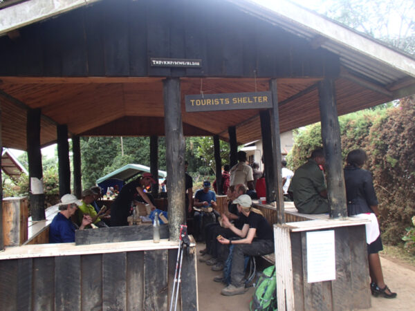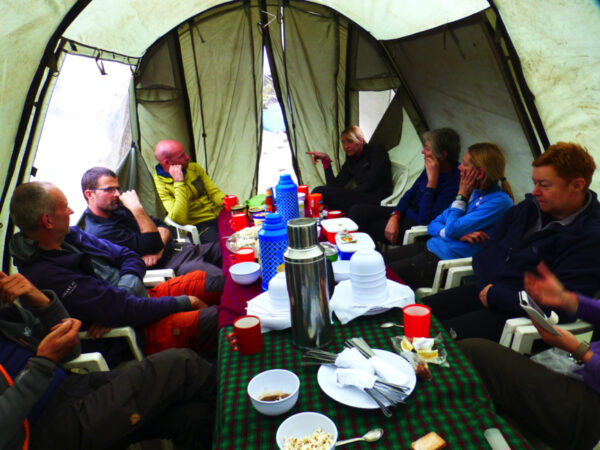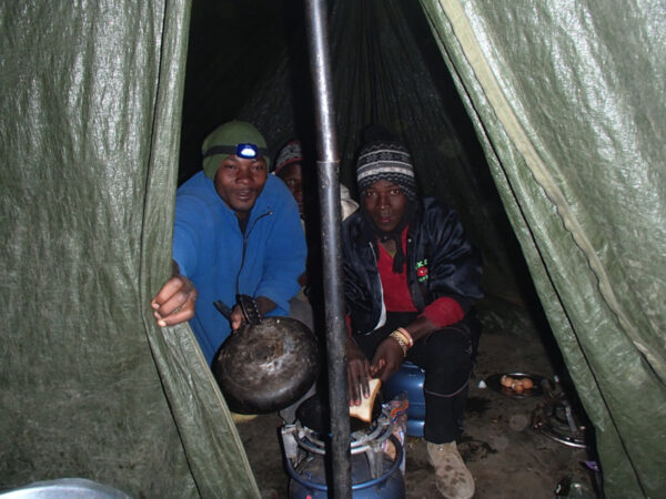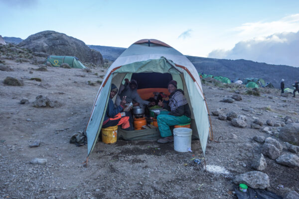 Om 11:00 u zit iedereen aan de thee in het Barafu Camp.