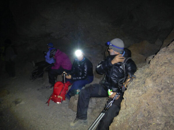 We lopen dan ook weer snel terug naar het startpunt van vannacht op 4600 meter.