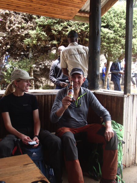 Een Kilimanjaro biertje smaakt goed na deze lange wandeling.