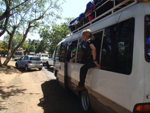Voordat we het weten zitten we in een busje en rijden we naar SG Resort in Arusha.