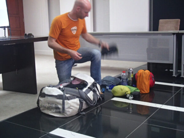 Om 00:30 u worden we wakker gebeld, de bagage van Fabian is naar het hotel gebracht. Ik slaap samen met Fabian op een kamer en we controleren zijn rugzak en duffel.